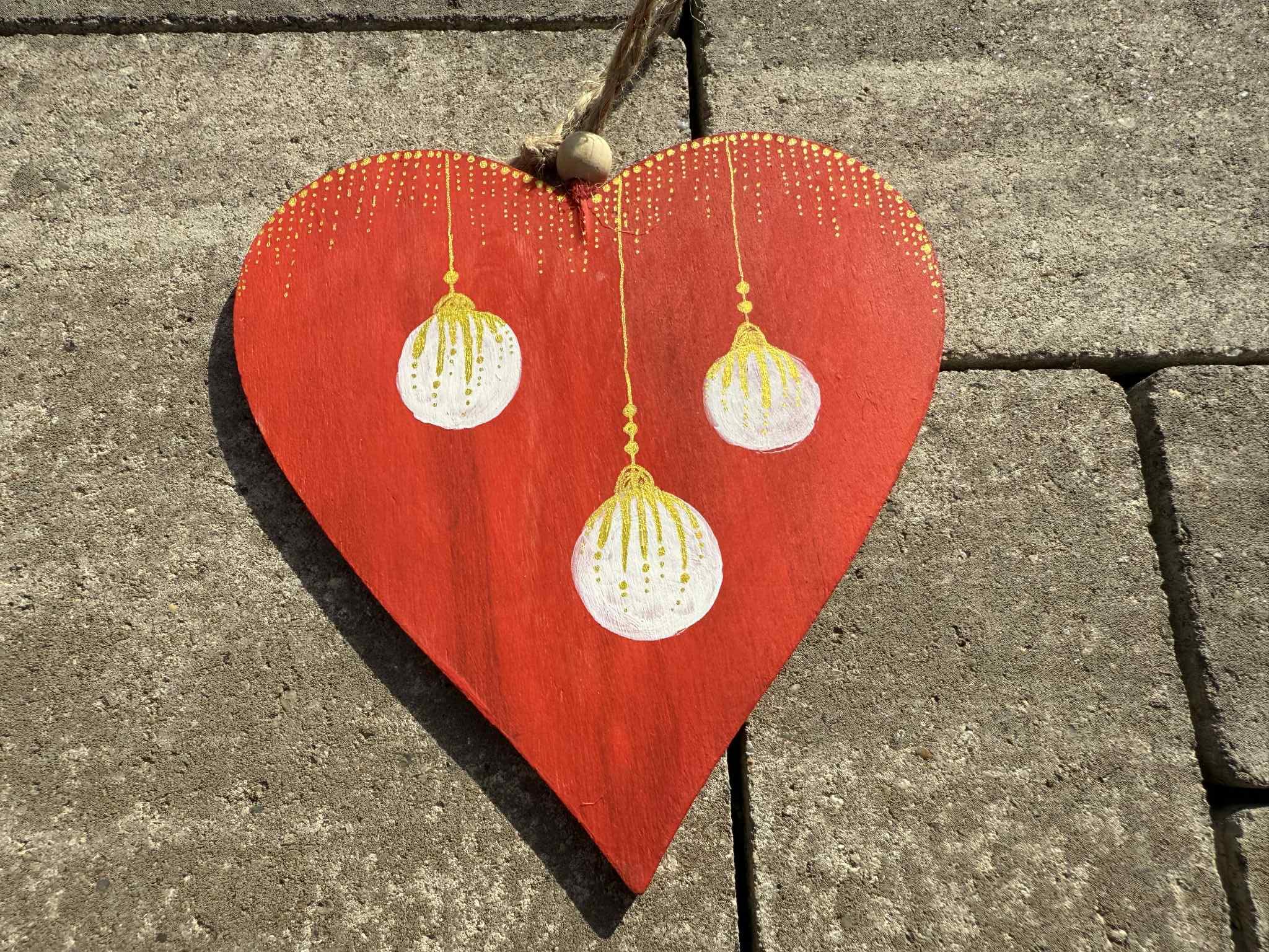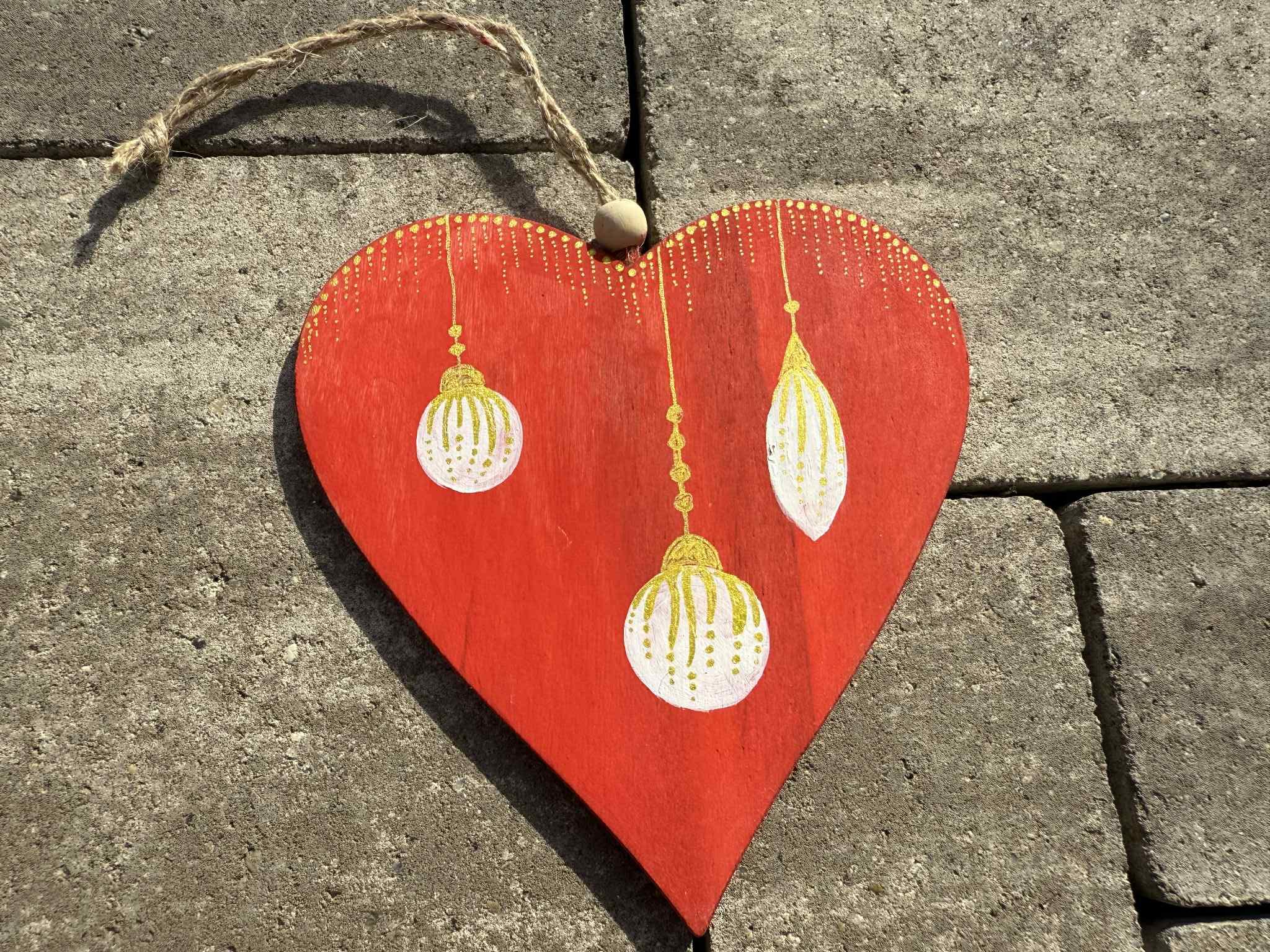 Szív alakú, függő díszes ajándékkísérő. Kézzel festett, egyedi termék. Felakasztható. Mérete: 12x12x0,4 cm